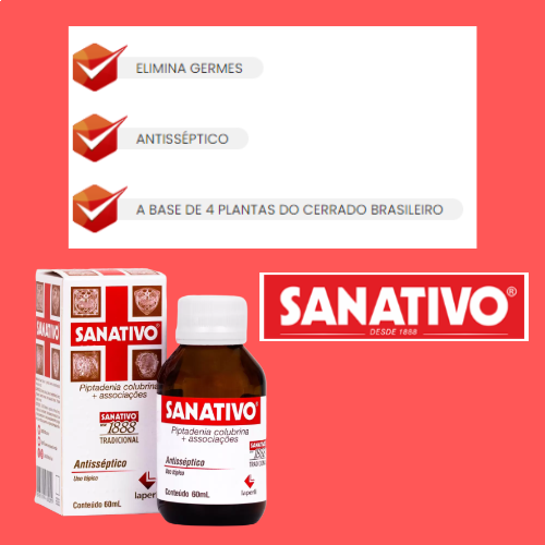 O SANATIVO antisséptico é um produto a base de plantas indicado para prevenir e inibir o crescimento de microrganismos na superfície da pele.