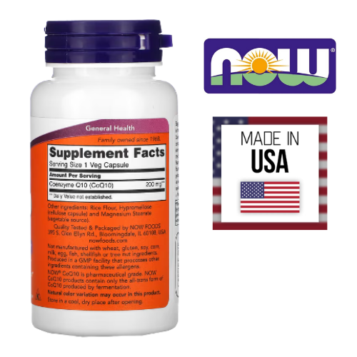 Ingredientes: coenzima Q10, farelo de arroz, antiumectante dióxido de silício e cápsula (estabilizante hidroxipropilmetilcelulose). "NÃO CONTÉM GLÚTEN". "NÃO CONTÉM LACTOSE".