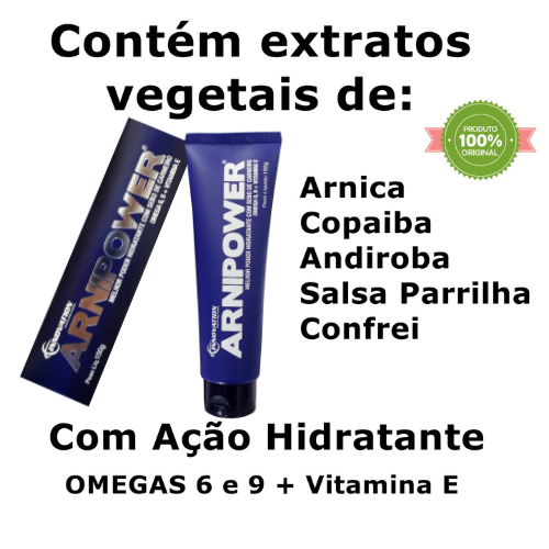 O ARNIPOWER é um Gel indicado para massagem corporal, que possui em sua formulação os extratos de arnica, copaíba, andiroba, salsa parrilha e confrei que unidos tem a finalidade de aliviar o cansaço e stress muscular. O produto também é composto por mentol, canfora e salicilato de metila que melhoram a circulação sanguínea dando uma agradável sensação a pele. Além dessas qualidades o produto possui uma matéria prima diferencial, que é o Sebo de Carneiro que age diretamente nas dores musculares e articulações. Além disso ele foi desenvolvido com a finalidade de proporcionar relaxamento após a prática de esportes e ou atividades físicas, ideal para atletas que submetem o corpo a impactos que podem causar o cansaço muscular.